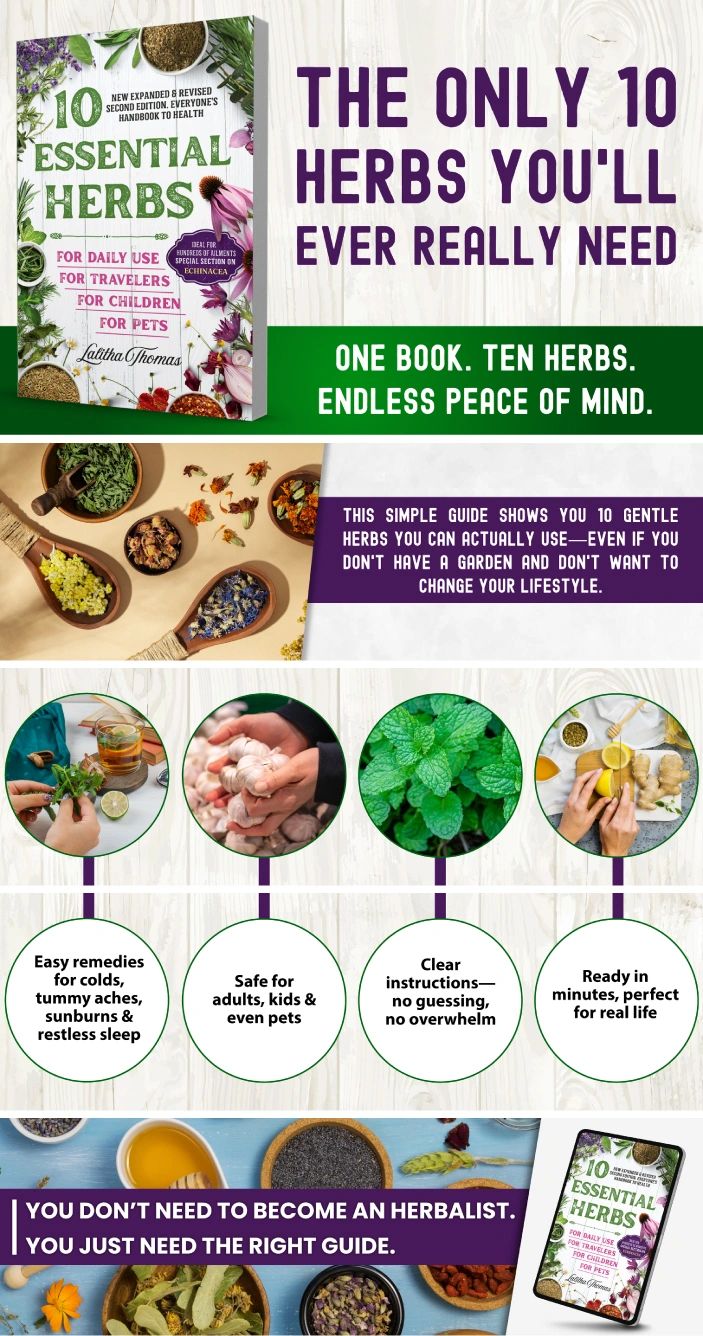 You don’t need time to study herbal medicine—you need something you can actually use. That’s why 10 ESSENTIAL HERBSstrips away the overwhelm and focuses only on what delivers everyday value. Instead of long lists, complex terminology, or elaborate preparations, this book shows you how a small number of familiar herbs can fit easily into your daily routine. You can open it, find what you need, and take action in minutes. It’s designed for real life, not for becoming an herbalist.